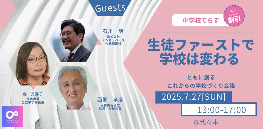 「もっと生徒の声を反映させたい」「子どもたちが自ら学びたくなる環境を提供したい」といった問題意識は、教師や教育関係者だけでなく、保護者や地域の人々にとっても重要なテーマです。学校は、ただ教育を受ける場所ではなく、子どもたちが成長し、自分の意見を表現する場であるべきです。このイベントは、そのための第一歩となることを目的としています。