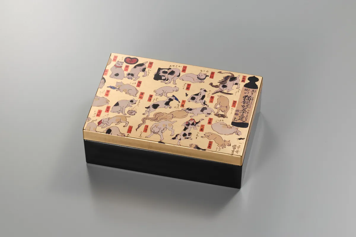 まず、注目すべきは「箔名画アクセサリーボックス」です。サイズはW163 × D115 × H55mmで、価格は5,500円(税込)です。ラインナップには、ドクロ、みゃう、モンスター、化け猫の4種類があり、どれも浮世絵のユニークなモチーフが活かされています。あしらった金沢箔の艶やかさが浮世絵の色彩と融合し、まるで異世界に迷い込んだかのような不思議な感覚を与えてくれます。