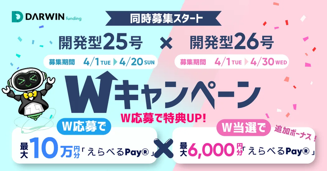 不動産投資の選択肢が広がる中、ダーウィンアセットパートナーズ株式会社は、同社のクラウドファンディングサービス「DARWIN funding」にて新たに開発型ファンド25号及び26号の募集を2025年4月1日(火)午前9時にスタートします。