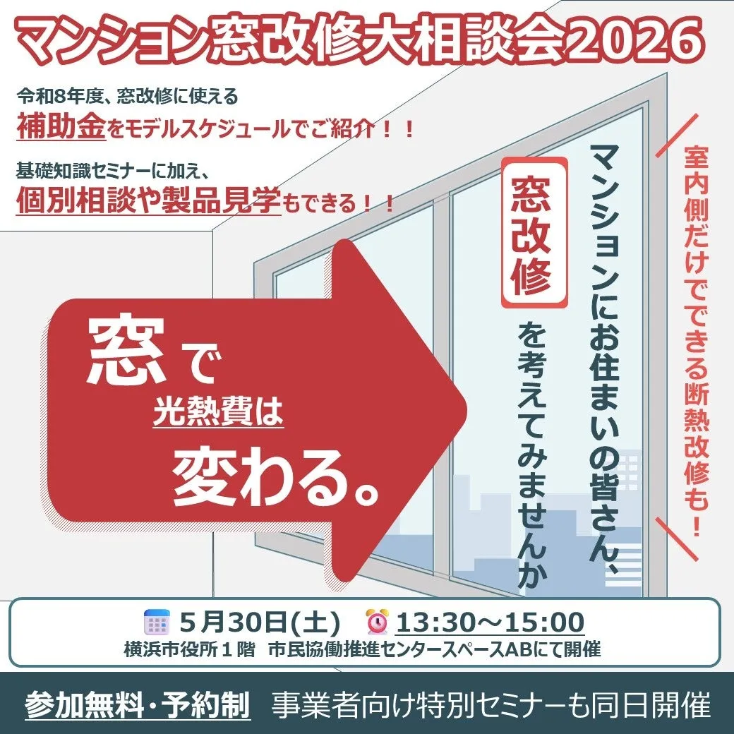 横浜市では、2050年までの脱炭素社会の実現を目指して、最高レベルの断熱性能を持つ住宅の普及に取り組んでいます。この一環として「よこはま健康・省エネ住宅推進コンソーシアム」が設立され、さまざまな施策が進められています。中でも、室内の快適性を高めるための「マンション窓改修」に特化したセミナーが、2023年5月30日に開催されることが決まりました。