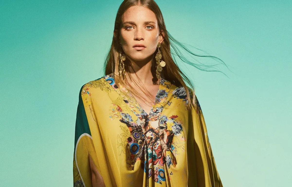 このコレクションには、流れるような美しいシルエットと鮮やかな色合いが特徴のアイテムが揃っています。ウィメンズウェアでは、軽やかなカフタンドレスやドレープスカート、シルク素材のパジャマセットが登場し、飾らないエレガントさが引き立っています。一方、メンズウェアは、伝統的なカットを取り入れつつ、グラフィックプリントで現代風にアレンジされ、リラックスした雰囲気を醸し出しています。