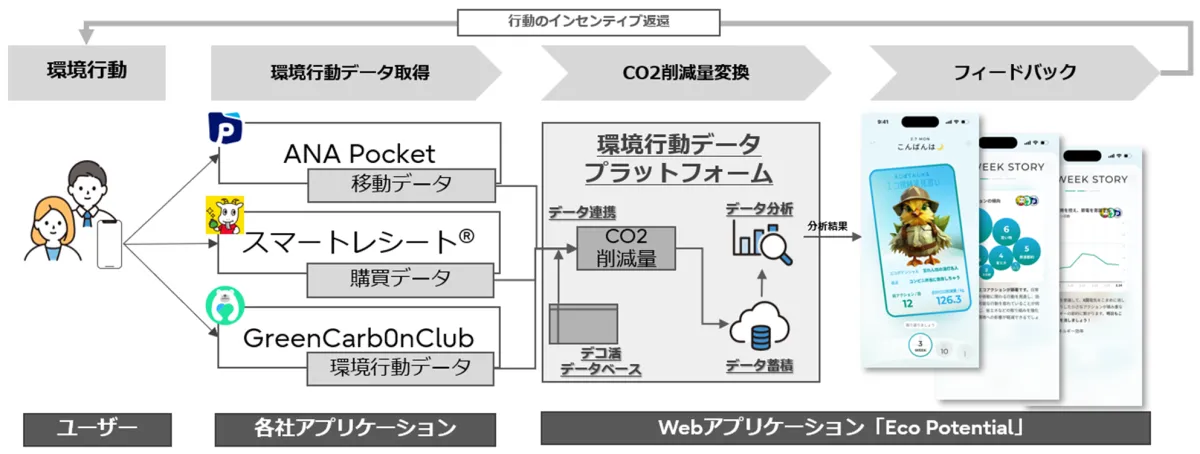 実験は約1ヶ月間行われ、参加者は各企業が提供するスマホアプリを用いて、日常の移動や購入、環境行動に関するデータを収集します。収集されたデータは、富士通が構築した環境行動データプラットフォームに保存され、特別に開発されたWebアプリ「Eco Potential」を通じて、参加者は自身のCO2削減量を確認できます。これにより、自分自身の行動がどのように環境に良い影響を与えているかを理解でき、市民の環境意識を高めることが期待されます。