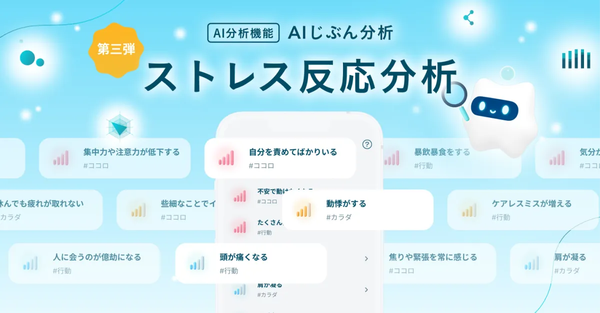 「ストレス反応分析」は、アウェアファイの「AIじぶん分析シリーズ」の一部です。このシリーズは、ユーザーが日常で抱える悩みや考えをAIが解析し、グラフィカルに可視化することによって、自己理解をサポートします。これまでにリリースされた「強み分析」や「ストレス要因分析」に対して、ユーザーからは多くのポジティブなフィードバックを得ています。
