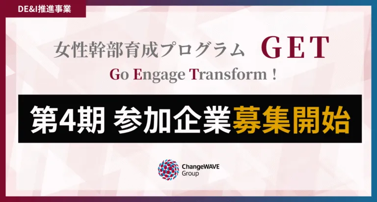 組織が持つ成長のカギは、そこで働く人材の育成にあります。それも特に女性の幹部候補に焦点を当てた育成が今、求められています。株式会社チェンジウェーブグループは、そんな女性リーダーを支援する実践型プログラム「GET(Go, Engage, Transform)」の第4期参加企業の募集を開始しました。