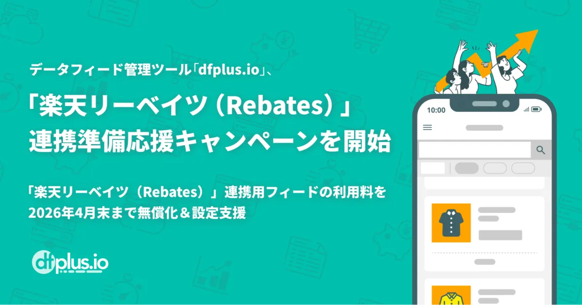 本キャンペーンでは、楽天リーベイツ用のデータフィード枠を2026年4月30日まで無償で提供します。この特典により、現在「dfplus.io」を利用中の方も、これから新たに利用開始される方も、関連コストを気にせずにデータ作成を進めることが可能です。
