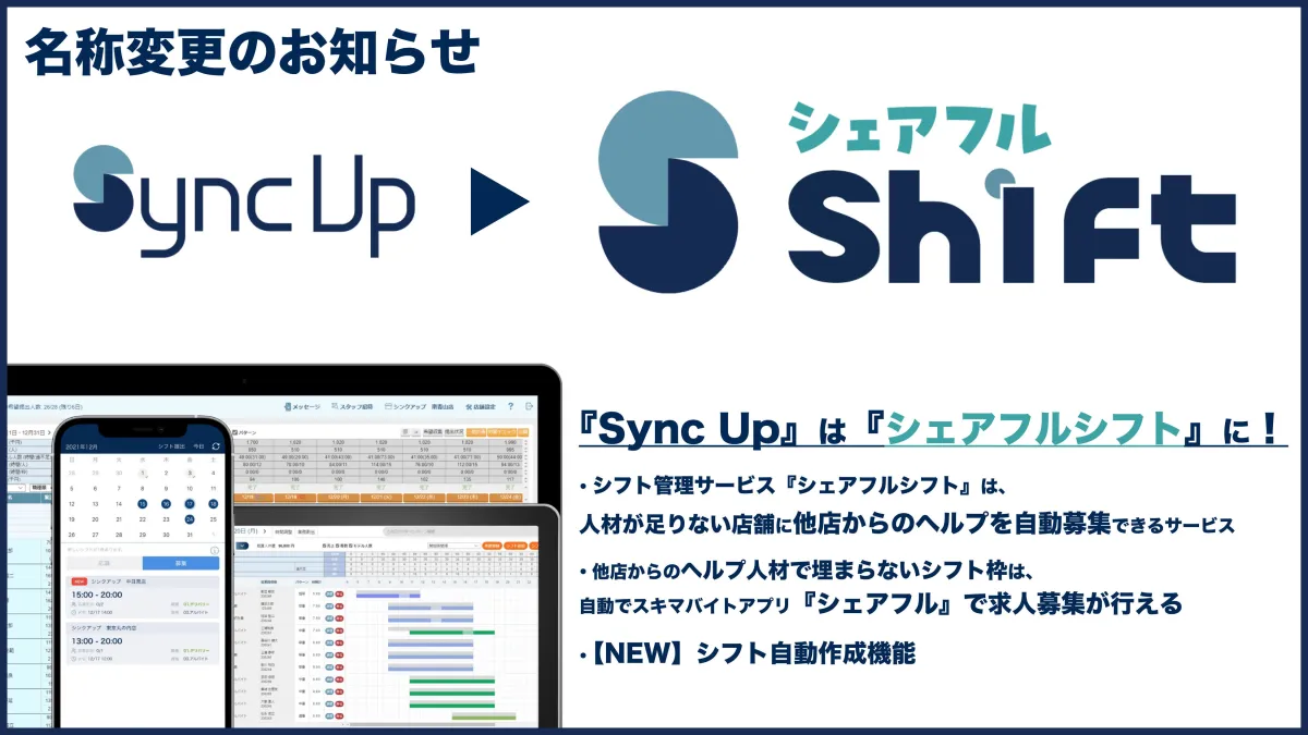 2024年8月1日、シェアフル株式会社は自社のSaaS型シフト管理サービス『Sync Up』の名称を『シェアフルシフト』に変更し、更に自動シフト作成機能を追加します。この新たなステップは、店舗運営におけるシフト管理の効率化を促進し、特に人材不足に悩む企業にとって、心強い一手となります。
