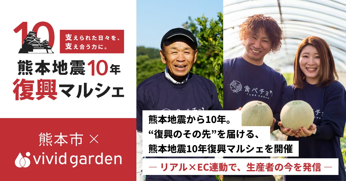 2026年4月18日(土)と19日(日)、熊本市にて「熊本地震10年復興マルシェ」が開催されます。このイベントは、熊本地震から10年の節目を迎え、農水産業の復興の道のりを支えてくれた皆様への感謝を伝えることを目的としています。また、復興を遂げた熊本の農水産物の魅力を広く発信する場となります。