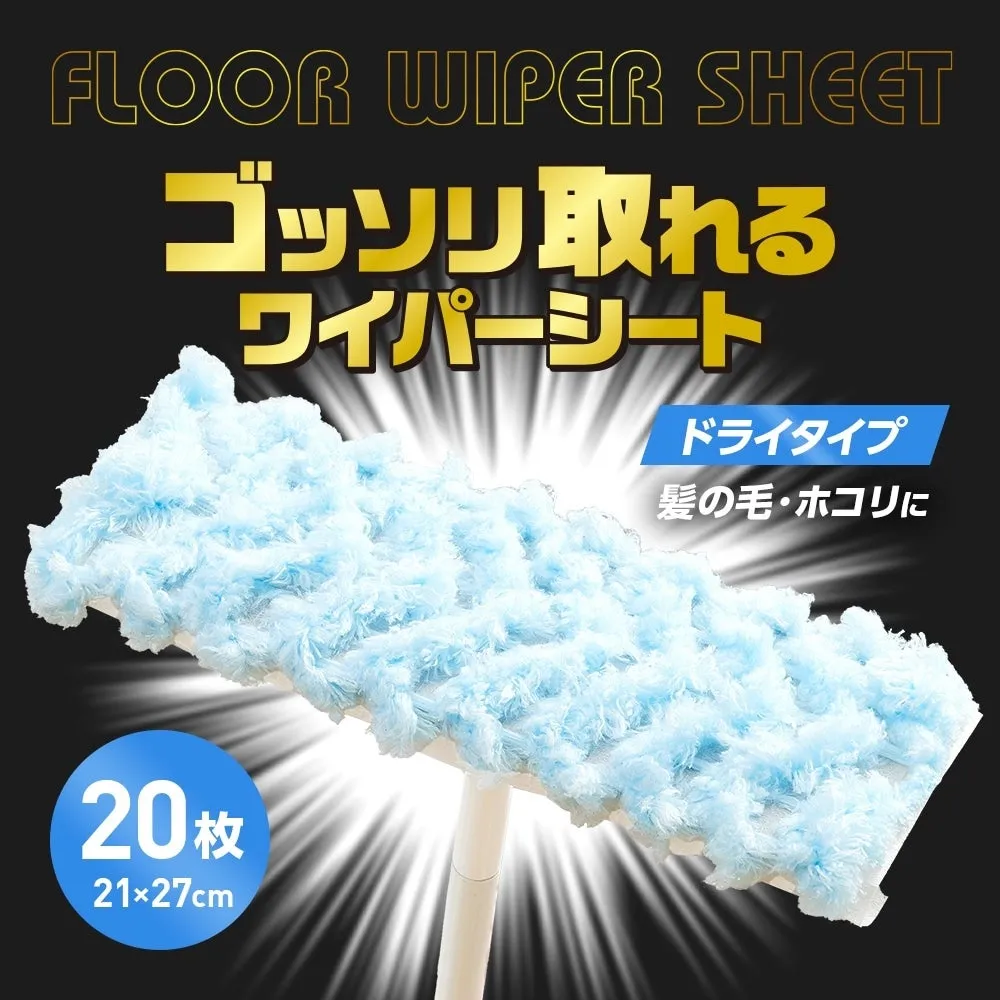「ゴッソリ取れるワイパーシート」は、ドライタイプのシートです。髪の毛やホコリを効率よく取り除くための設計がなされています。特に、ふわふわの長い極細繊維が特徴で、これは小さな段差や隙間に隠れるゴミをしっかりと取り込むために最適です。このシートはフローリングの掃除だけでなく、壁や天井のほこり取りにも使えるので、非常に便利です。