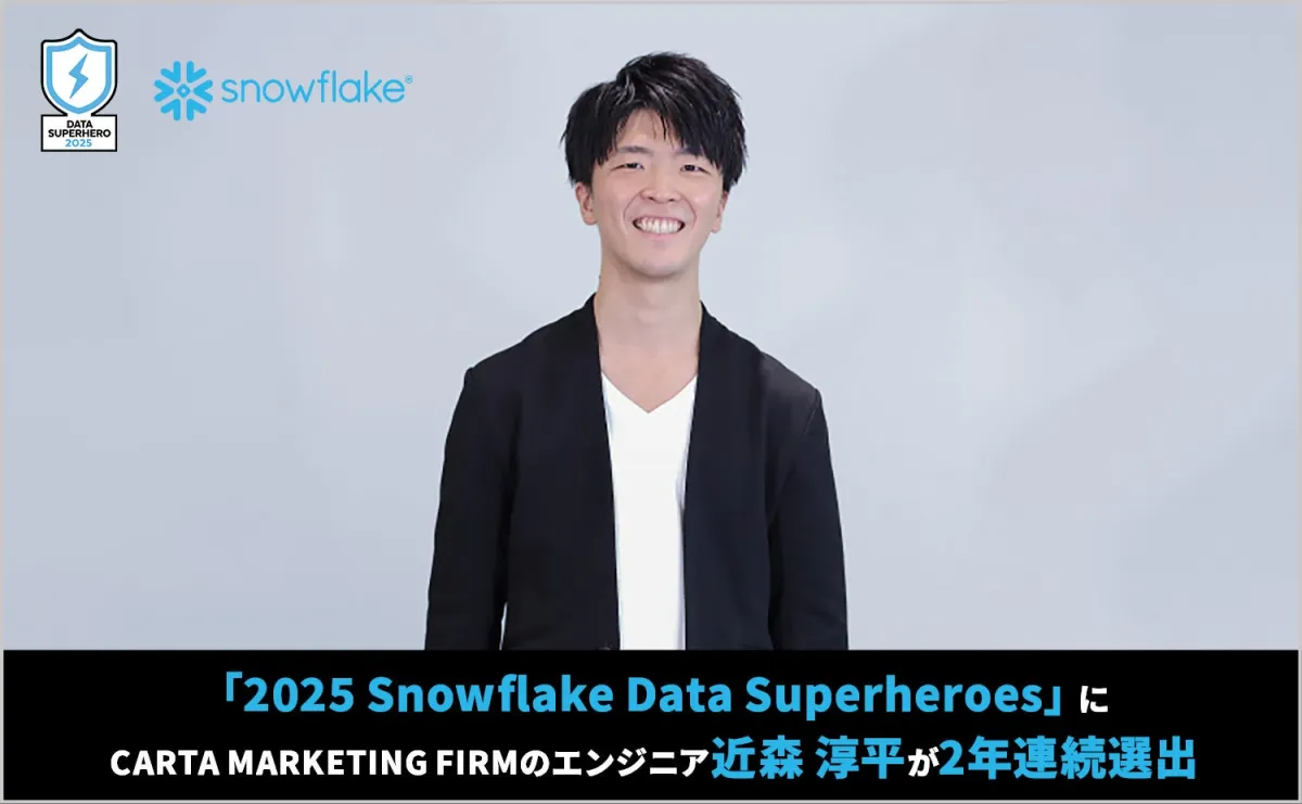 近森淳平(ちかもりじゅんぺい)は、株式会社CARTA MARKETING FIRMに所属するデータエンジニアであり、2024年に続き2025年も「2025 Snowflake Data Superheroes」に選ばれました。この選出は、Snowflake社が毎年行うプログラムで、データエンジニアリングのイノベーションを推進する個人を表彰します。今年は、全世界で105名、日本から13名が選ばれ、近森さんの業績は高く評価されました。