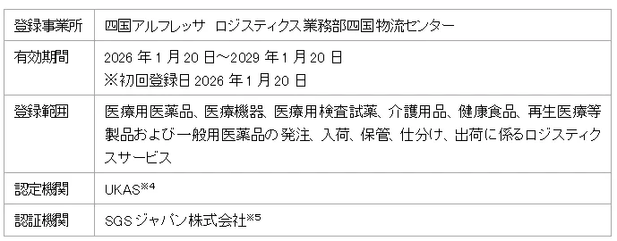 四国アルフレッサ株式会社(本社:香川県高松市、社長:清下洋介)は、このたびISO9001認証を取得したことを発表しました。この認証は、ロジスティクス業務部に所属する同社の四国物流センターにおいて取得されました。