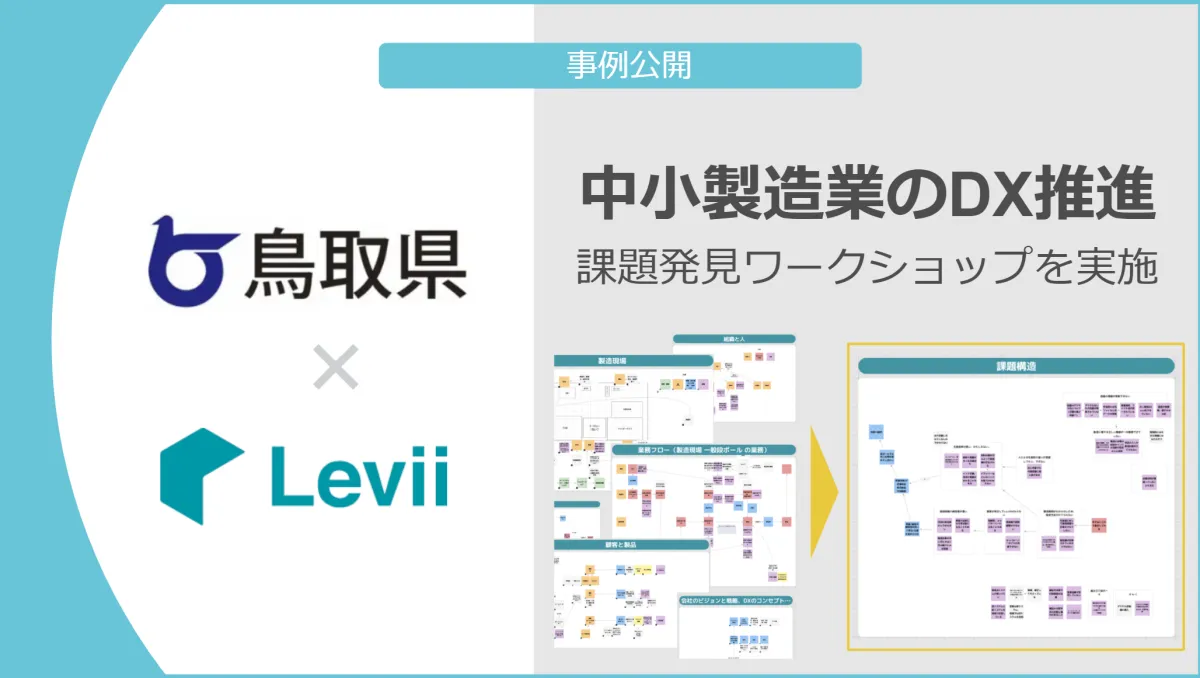 鳥取県庁の産業未来創造課と株式会社レヴィの連携により、県内の中小製造業のデジタルトランスフォーメーション(DX)推進が進展しました。この取り組みでは、「DX推進のための課題発見ワークショップ」を通じて、企業が抱える様々な課題を洗い出し、構造化・可視化することに成功しました。