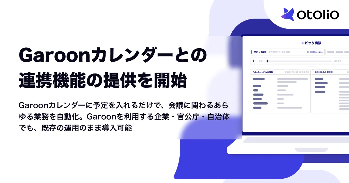 OtolioがGaroonカレンダーとの連携機能を発表