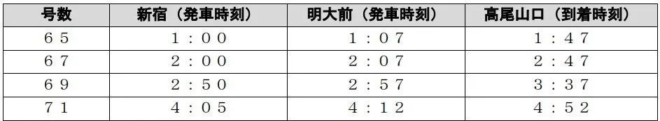 - - 特別列車: 京王ライナー迎春号(新宿発高尾山口行き、4本運行)