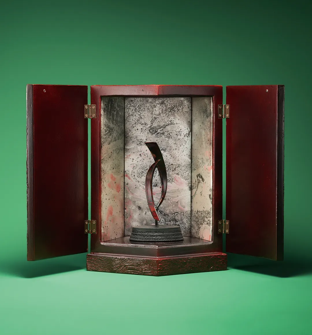 十時啓悦氏が監修した新作厨子「時跡」は、仏壇・仏具のメーカーであるアルテマイスターとの共同開発によって生まれました。この厨子には「時が刻み込んだ跡」という意味が込められています。開発の過程では、社員たちが十時氏の技法を学び、質の高い製品を作り上げました。