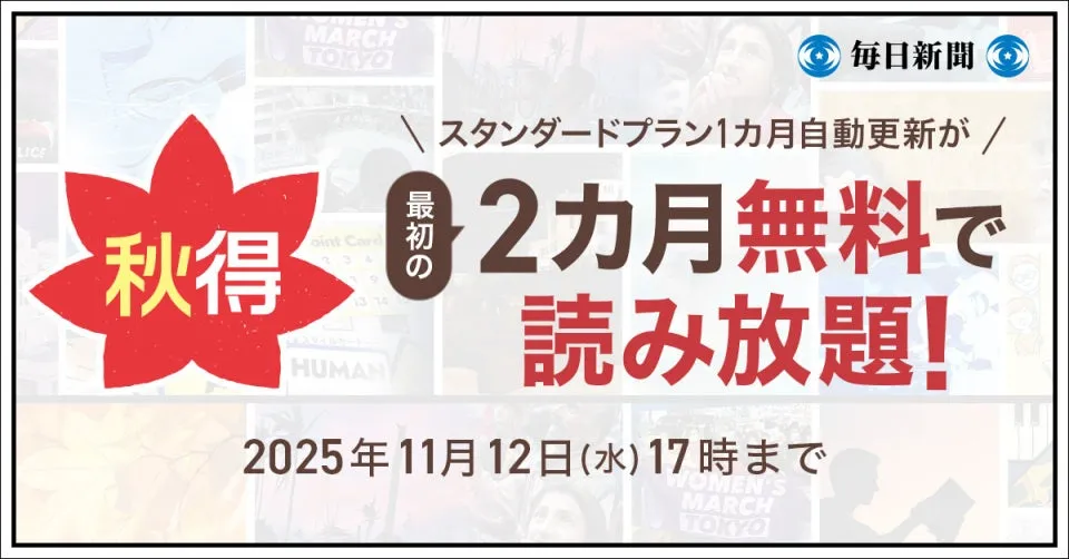 2025年10月8日(水)から11月12日(水)までの期間、毎日新聞社が展開するデジタルニュース配信サービス「毎日新聞デジタル」では、特別キャンペーン「秋得」を実施します。このキャンペーンでは、スタンダードプランにお申し込みの方が最初の2カ月を無料で楽しむことができます。