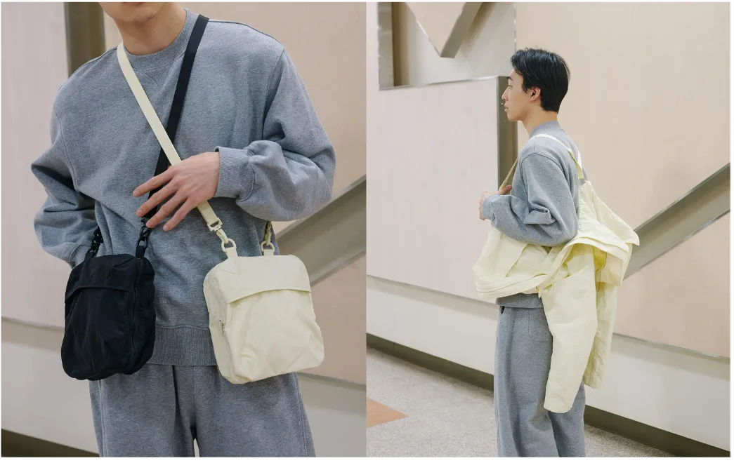 さらに、パッカブル仕様で折りたたみ可能なため、持ち運びも便利です。バッグ型に収納でき、旅行中は荷物となることを避けられます。暑くなった際には、バッグの紐を身頃ループに通すだけで、ハンズフリーで背負うこともできるので非常に実用的です。