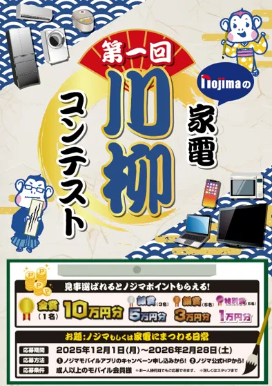 2025年12月1日から2026年2月28日まで行われていた「第一回 ノジマ家電川柳コンテスト」の受賞作品が発表されました。この取り組みは、家電に関する共感できるエピソードを川柳形式で表現してもらうことを目的としており、多くの応募者に楽しんでもらいました。募集期間中、計3,599句の川柳が寄せられ、その中から14作品が栄えある賞に選ばれました。