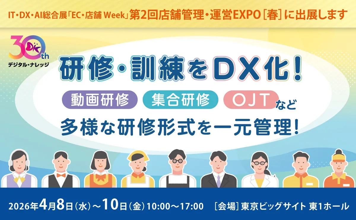 2026年4月8日(水)から10日(金)まで、東京ビッグサイトで「EC・店舗 Week」第2回店舗管理・運営EXPO[春]が開催されます。日本初のeラーニング専門企業として知られる株式会社デジタル・ナレッジは、今年もこの重要なイベントに出展します。