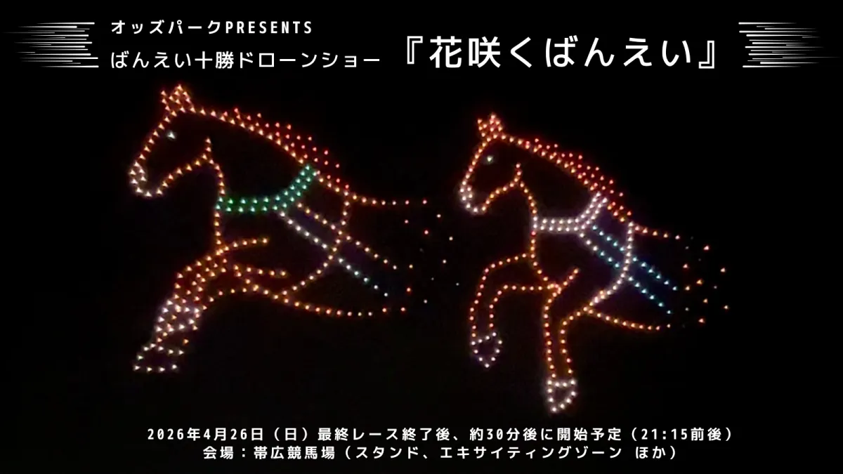 2026年4月26日、帯広競馬場にて一夜限りの特別なイベント「オッズパークpresents ばんえい十勝ドローンショー『花咲くばんえい』」が開催されます。このイベントでは、株式会社レッドクリフと株式会社ノースドローンショーが協力し、500機のドローンによる幻想的な演出が実現します。