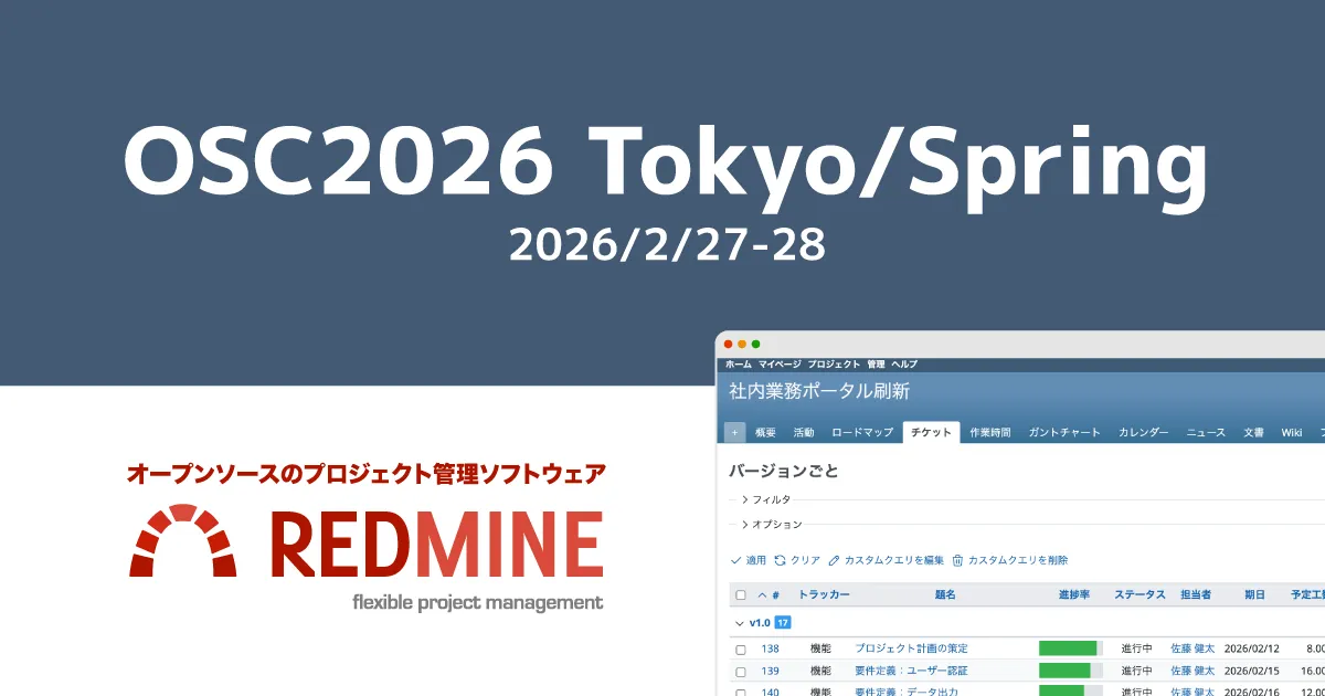 ファーエンドテクノロジー株式会社が、2026年2月27日(金)から28日(土)にかけて、駒澤大学駒沢キャンパスで開催される「オープンソースカンファレンス(OSC)2026 Tokyo/Spring」に出展します。このイベントでは、同社が開発したプロジェクト管理ソフトウェア「Redmine」と、これを基にしたクラウド版「My Redmine」のデモンストレーションが行われます。