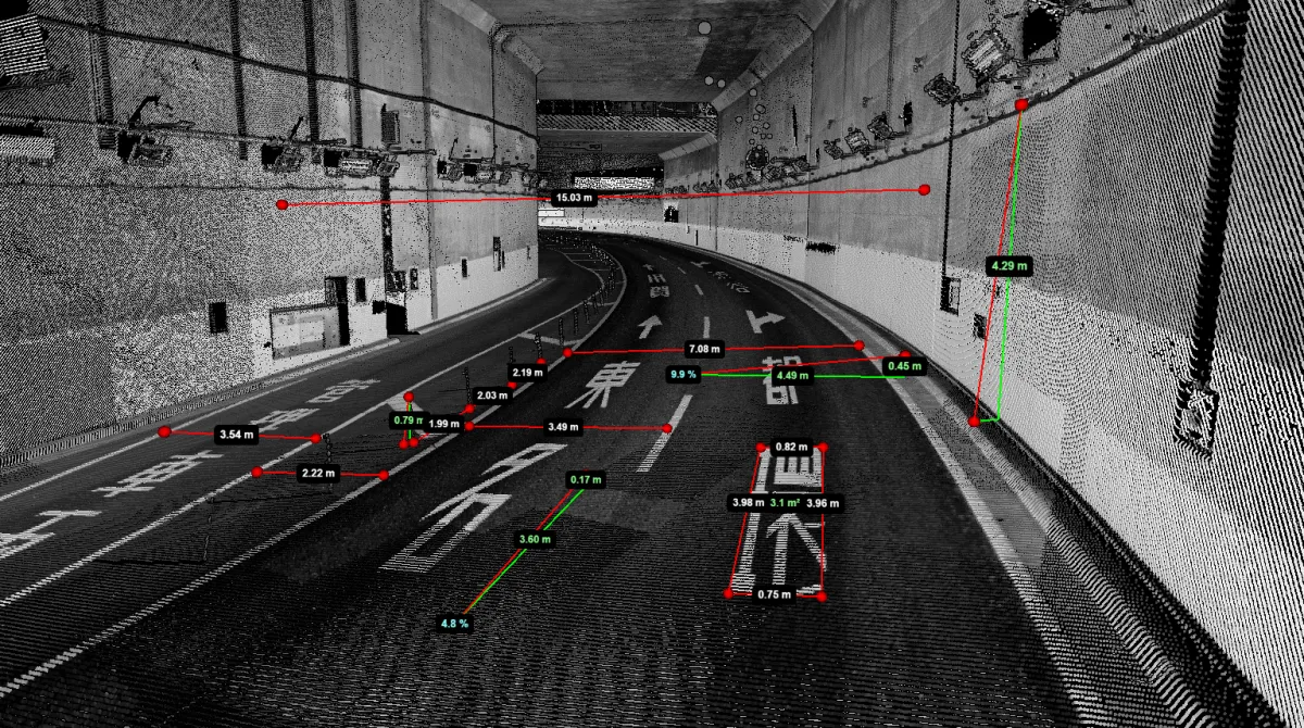 高精度3次元点群データを活用したこのサービスにより、ユーザーはWeb上で道路や周辺構造物を確認し計測することが可能になります。特に、交通事故調査やインフラ管理の分野での利用が進んでいます。