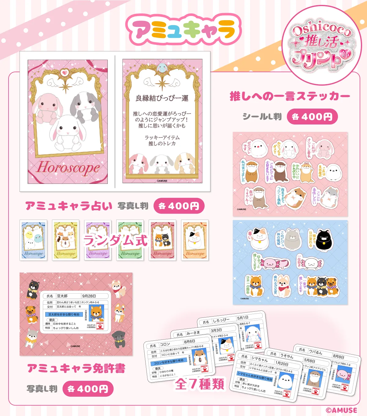 この春、アミューズと株式会社Oshicocoのコラボレーションが、推し活女子たちに嬉しいニュースを届けます。「アミュキャラ推し活プリント」シリーズが全国のコンビニで登場! SNSフォロワー11万人を誇るOshicocoが運営するこのコレクションは、人気のアミューズキャラクターたちを使った魅力的なアイテムが目白押し。