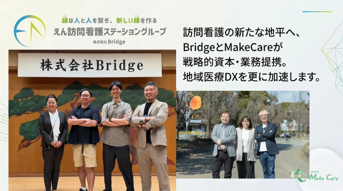 2023年10月、株式会社Bridge(高知県高知市)と株式会社MakeCare(大阪府大阪市)が資本提携および業務連携を開始することを発表しました。この新たな提携により、両社は訪問看護事業のさらなる拡大とともに、経営基盤を強化し、在宅医療と介護領域における持続可能な成長モデルの確立を目指します。