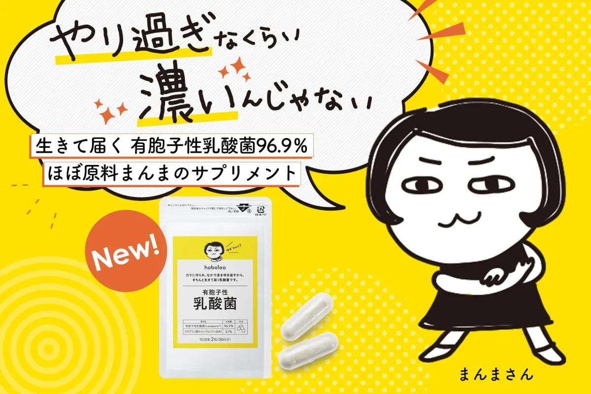 新谷酵素が手がける「hobo100有胞子性乳酸菌」は、腸に生きた乳酸菌を届ける信頼できるサプリメントです。高純度の有胞子性乳酸菌を使用しているため、効果的な健康サポートが期待できるでしょう。腸の健康に気を使っている方は、ぜひ試してみてはいかがでしょうか。