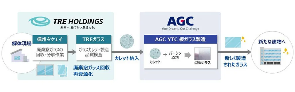AGCとTREは今後も経済性の検証を継続し、全国での窓ガラスリサイクルの体制構築を目指します。廃棄窓ガラスから新たな資源を生み出すことで、より持続可能な未来づくりに貢献することを目指しています。