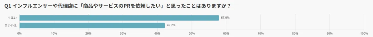調査結果によると、インフルエンサーや代理店に「依頼したい」と回答したのは57.9%に達し、かなりの人数がPR依頼に対して前向きであることが示されました。この結果は、インフルエンサーが単なる広告としてではなく、信頼できる情報源として認識されていることと関連しています。具体的に、SNSでの発信力の高さが理由として最も多く挙げられました。
