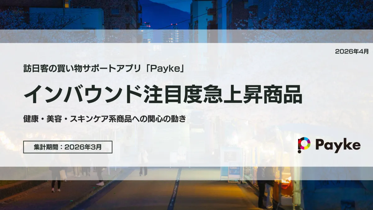 訪日外国人の消費行動が「土産物購入」にとどまらず、実用的で日常的に使用できる商品の購入に向かっていることが明らかになりました。Paykeは今後もインバウンド消費の変化を追い続け、各市場における動向を報告していきます。これからの訪日外国人消費動向に注目です。