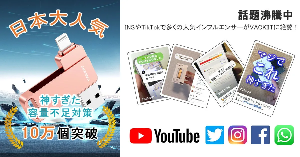 VackiitのUSBメモリがSNSで話題に上がる中、インフルエンサーたちの間でもその品質と機能性が高く評価されています。「ストレージ不足を解決してくれる救世主」としてのリコメンデーションが飛び交い、多くの人々が実際にこの製品を試している様子が伺えます。Instagramでは34万回、YouTubeでは39万回の視聴回数を記録しており、その人気は明らかです。