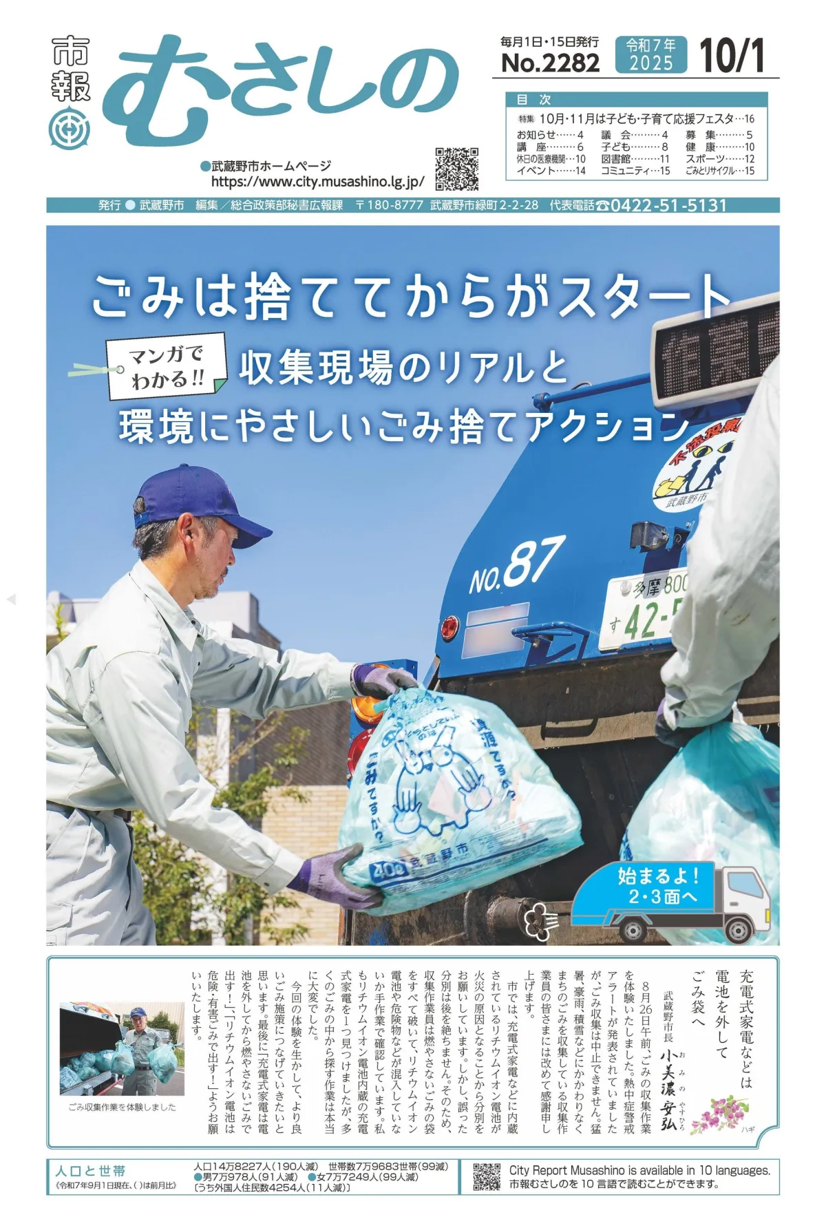 最優秀賞を受賞した「市報むさしの令和7年10月1日号」は特集記事「ごみは捨ててからがスタート」というテーマで、マンガ形式でごみ収集員の仕事を紹介。収集現場のリアルや環境への配慮が伝わる内容で、地域住民の意識を変える力を持っています。また、市広報戦略アドバイザーの根本陽平氏がメインコピーの考案に参加し、モデルには市の職員が選ばれたことで、より身近に感じられる内容に仕上がりました。市民の皆さんはこの特集を通じて、正しいごみ捨ての方法を学び、より良い環境づくりに貢献できるでしょう。