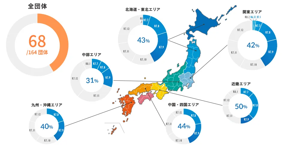 TASKクラウドサービスは、複数の市区町村が共同で利用できるように設計されたクラウド型のシステムです。これにより、システムの運用コストを最適化し、より効率的なサービスを提供することが可能です。現在、全国で164の団体がこのシステムを採用しており、その数は年々増加しています。
