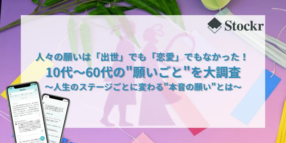 株式会社ビルディットが提供するアプリ「Stockr」では、この七夕の時期に合わせて、ユーザーのビジョンや願いごとについての調査を行いました。その結果、10代から60代の幅広い世代が求めるのは、出世や恋愛ではなく、何よりも「自己成長」と「内なる充実」であることが明らかになりました。
