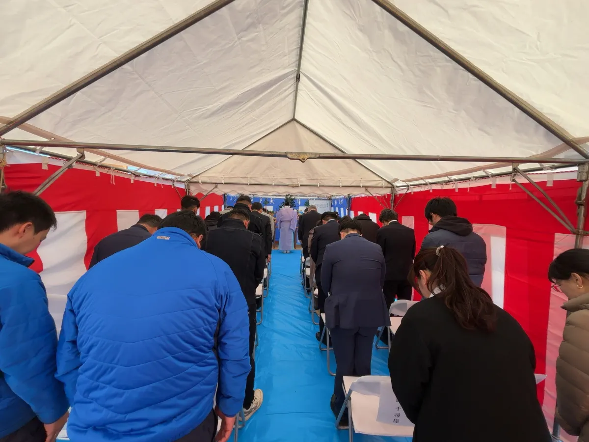地鎮祭には、設計・施工会社の関係者や地元の農業従事者など、総勢25名が参加し、安全な工事の進行を祈願しました。出光興産は、地域のエネルギー自給率向上や持続可能な営農の支援を通じて、カーボンニュートラル社会の実現に貢献することを目指しています。