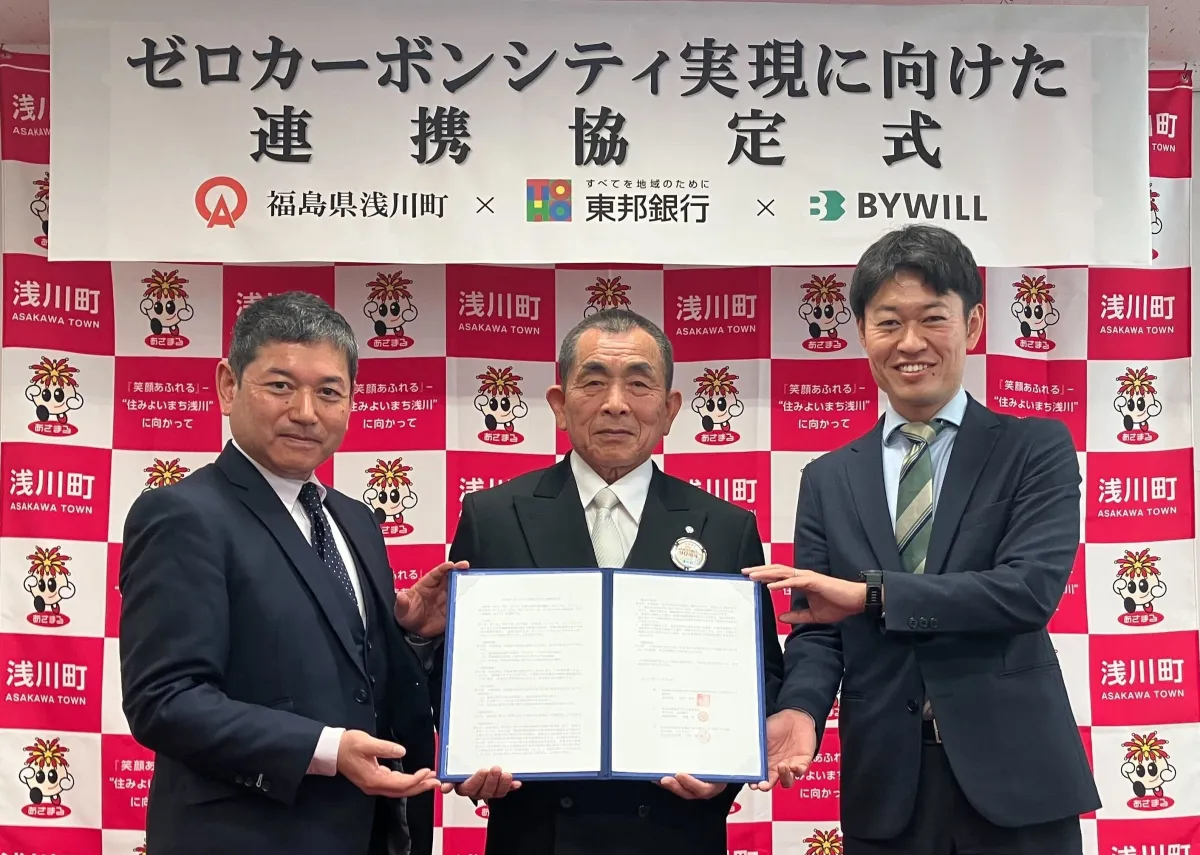 福島県の浅川町が、地域の脱炭素化を劇的に進めるため、株式会社東邦銀行と株式会社バイウィルとの間で「ゼロカーボンシティ実現に向けた連携協定」を結びました。この協定は、2050年までに二酸化炭素の排出量を実質ゼロにすることを目指す浅川町の新たな取り組みにおいて、重要な一歩を踏み出すものです。