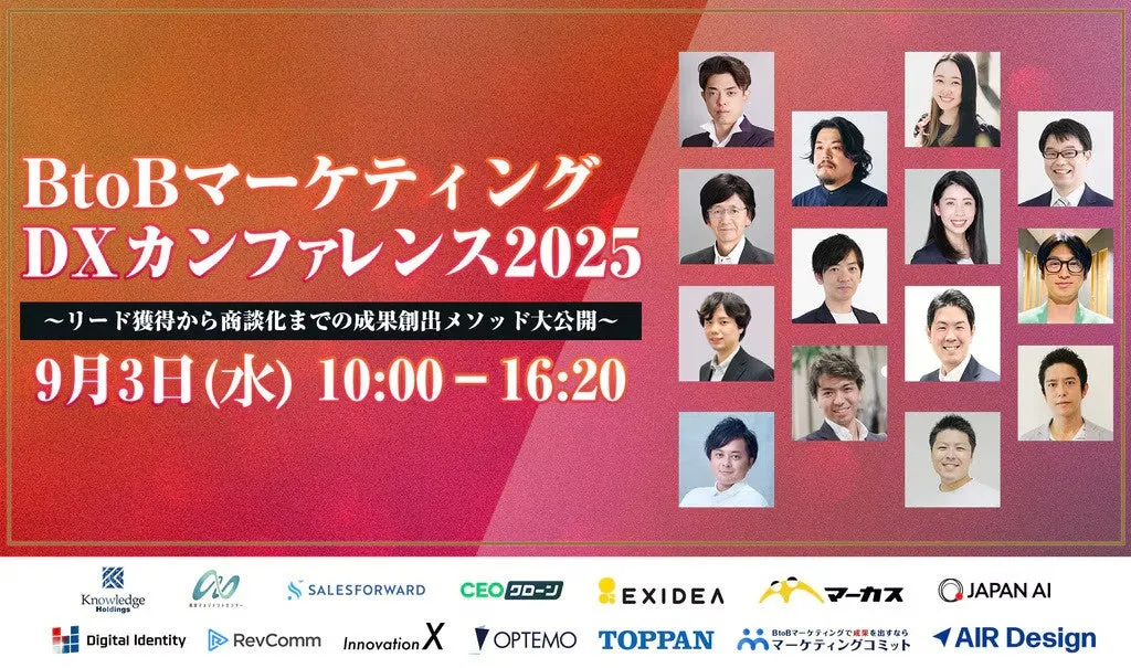 2025年9月3日(水)、東京都渋谷区にて、「B to BマーケティングDXカンファレンス2025」が開催されます。本カンファレンスでは、マーケティングや営業の新しい潮流を探るための貴重な機会を提供します。テーマは「リード獲得から商談化までの成果創出メソッド大公開」となっており、現代のBtoB企業が直面する課題を解決する実践的なアプローチを紹介します。