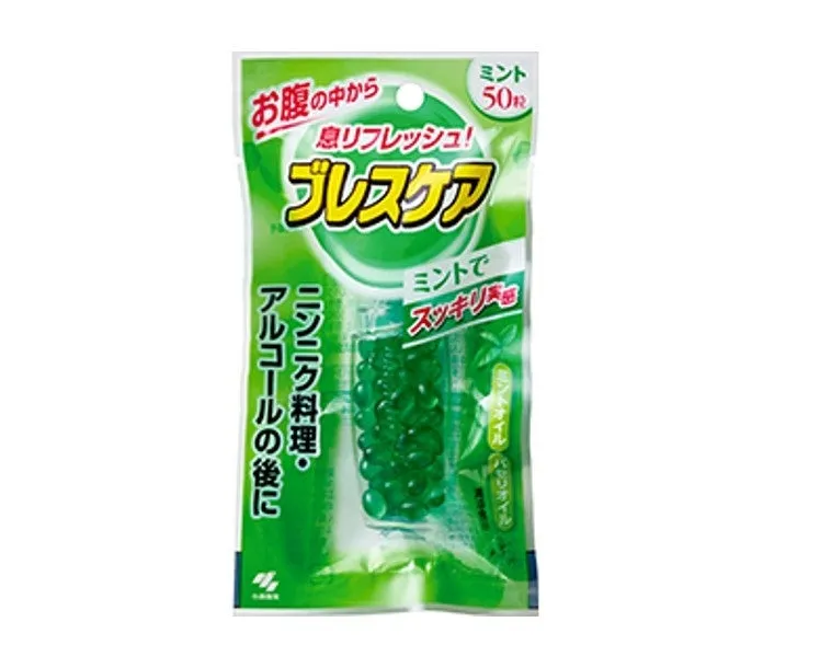 ブレスケアは、小林製薬が製造販売している口の中の清涼感を保つための製品。水で飲むことで清涼成分が直接お腹に届き、リフレッシュ感を提供してくれます。希望小売価格は546円(税抜)で、50粒入りとなっています。詳細は
