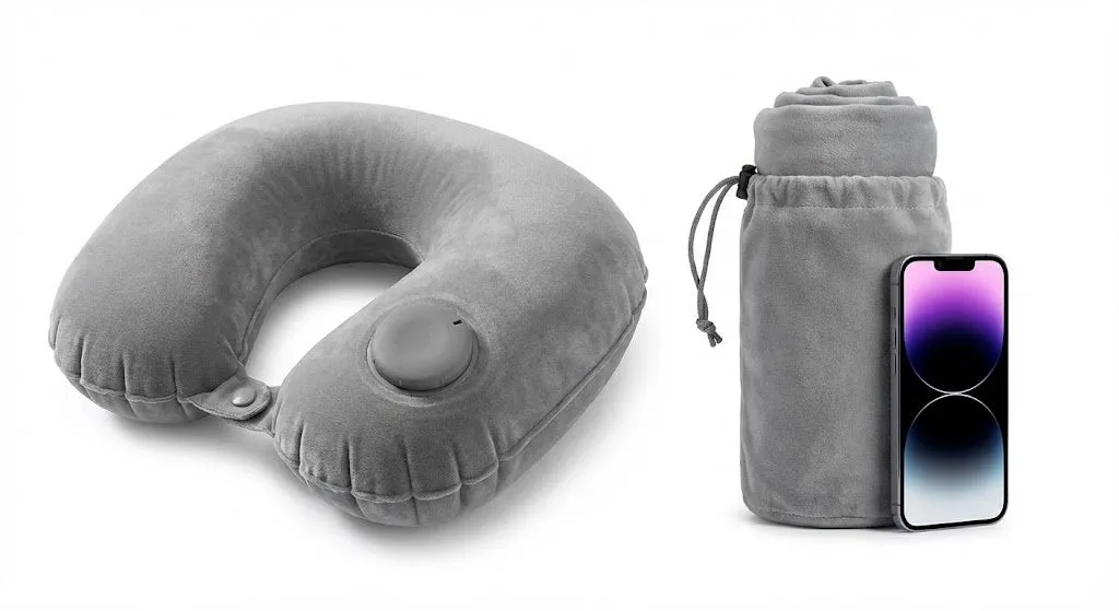内蔵された大きな「丸型ポンプ」を指で押すことで、わずか30秒で膨らむこのピローは、口を使わずにすむため衛生的です。空港や機内など、公共の場でも他人の視線を気にせず使用できます。