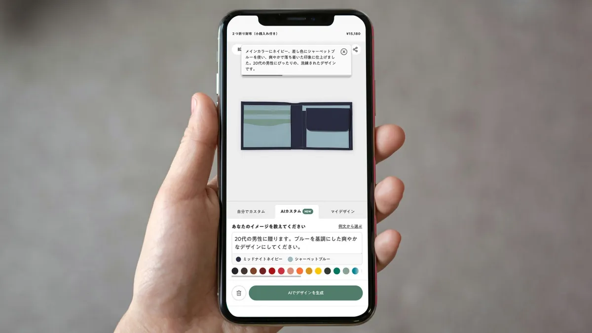 このように、多様な要望に対応し、ユーザーの個性にフィットした提案を行います。日本国内のレザーブランドにおいて、AIを活用したデザインの提案は初の試みであり、業界においても大きな影響を与えることでしょう。