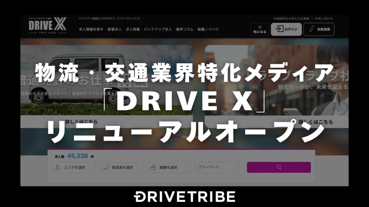 株式会社ドライブトライブは、物流・交通業界に特化した人材サービスを提供しています。このたび、ドライバーHRメディア「DRIVE X」を全面的にリニューアルしました。これまでは求人情報中心の展開でしたが、今回のリニューアルにより“求人×情報”のハイブリッドメディアとして生まれ変わります。