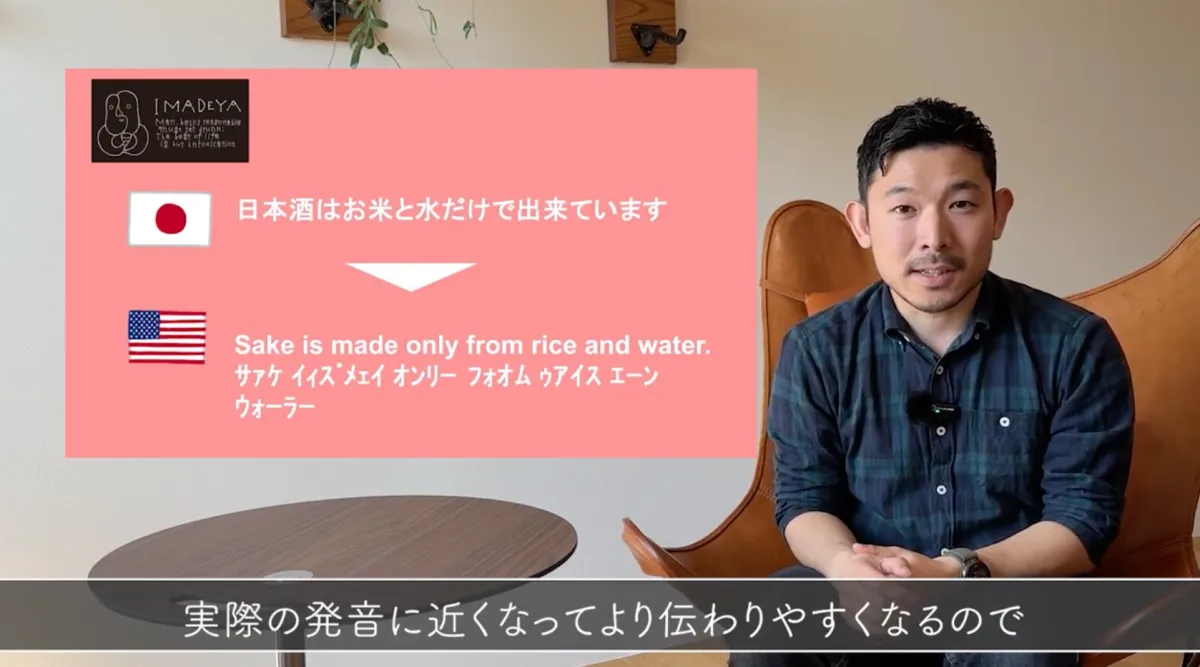 IMADEYAは最近、取引先の飲食店から「訪日外国人にお酒をどう説明すればいいのかわからない」という声を受け、約8,000店舗を対象に「英語で説明する日本酒講座」の動画を配信しました。この講座は、日本酒に関する基本用語や、飲食店でよく使用されるフレーズ、国ごとに異なる好まれる酒の傾向を約20分のプログラムで解説しています。