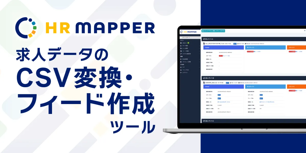 HR MAPPERは、求人情報のCSV変換及びフィード作成に特化したツールです。従来、複数の求人媒体や自社オウンドメディアへの情報提供は非常に手間がかかりましたが、HR MAPPERを用いることで、求人サイトのフォーマットに最適化されたCSVが自動的に作成されます。この機能は、大量の求人情報を持つ企業様にとって大変役立つものと言えるでしょう。