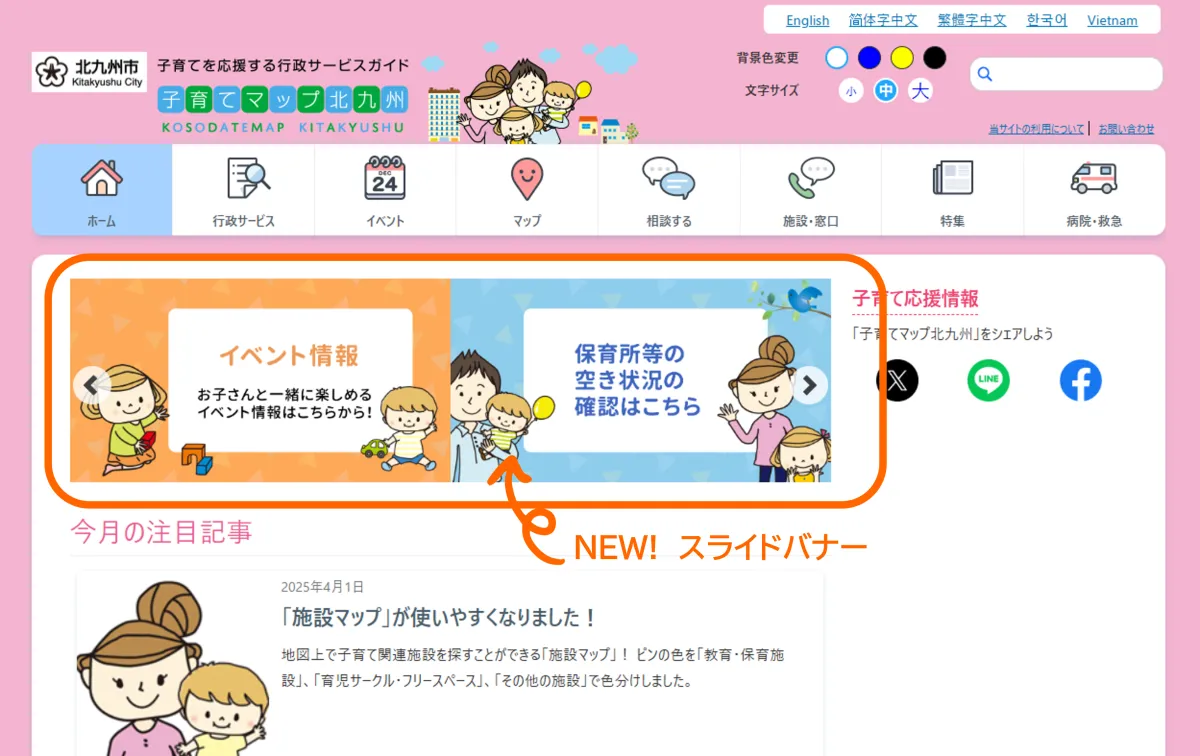 『子育てマップ北九州』は、妊娠や出産に関する情報、保育施設の案内、健康管理、さらには経済的サポートなど、北九州市が提供する子育て支援に関する幅広い情報を集約したサイトです。利用者は、お子さんの年齢や関心に応じて、必要な情報を簡単に検索できるようになっています。これにより、子育て中の親たちが抱える疑問や課題を解決する手助けを行っています。