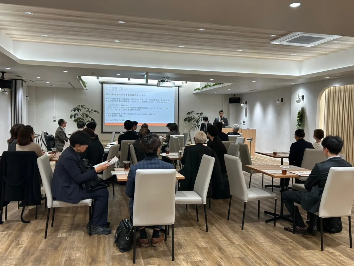 「しゅうサポ」は、株式会社あかり保証が中心となり、高齢化社会における「おひとりさま」や「おふたりさま」をサポートする事業者のためのコミュニティです。医療・介護、金融機関、保険会社、士業など、各分野の専門家たちが集まり、定期的にセミナーや交流会を実施しています。これは、情報を共有し、幅広いネットワーク作りを図るための重要な場と位置付けられています。