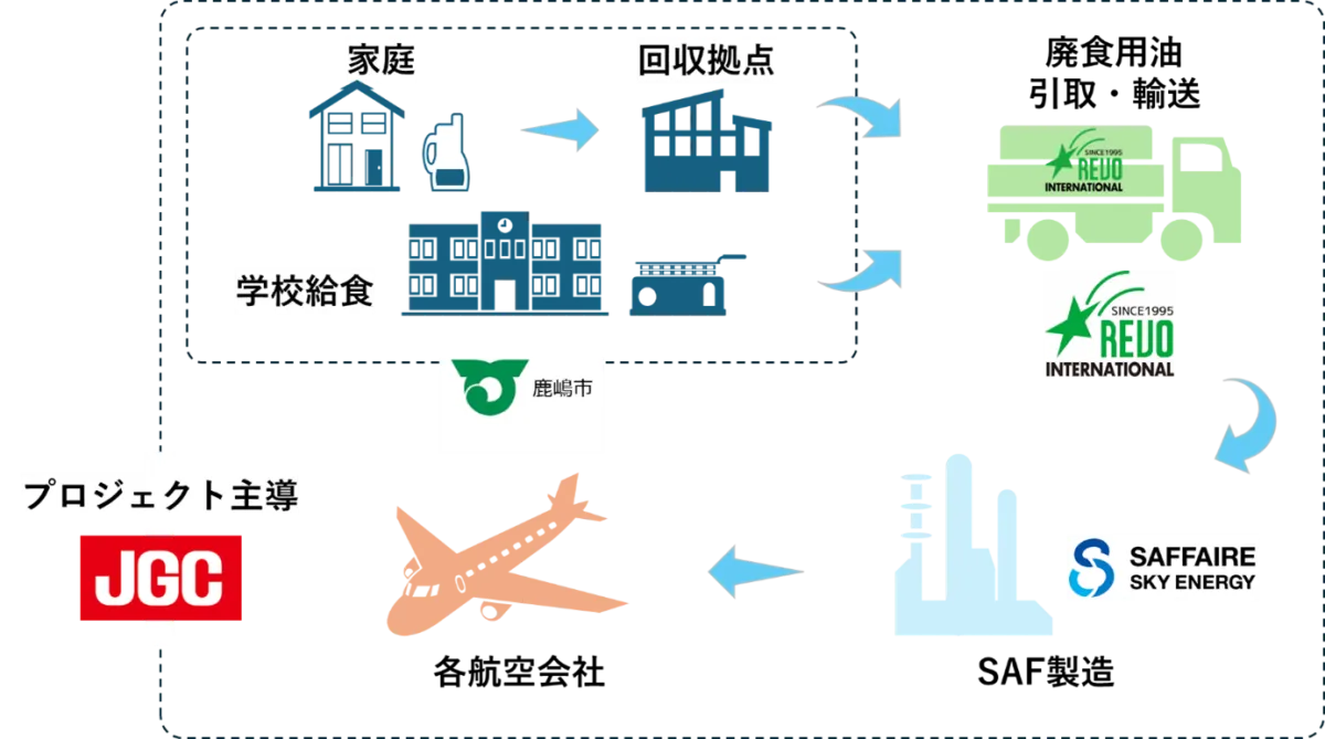 鹿嶋市は、持続可能な航空燃料(SAF)の普及に向けた新しい取り組みとして、日揮ホールディングス株式会社、株式会社レボインターナショナル、および合同会社SAFFAIRE SKY ENERGYとともに連携協定を結びました。この協定は、2025年9月26日に鹿嶋市役所で締結されました。これにより、廃食用油を資源として活用し、SAFの原料としての再利用を推進していきます。