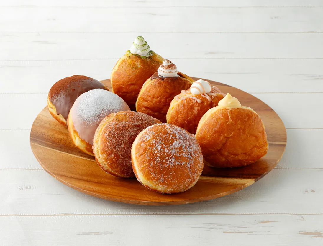 さらに、8種類の異なるフレーバーが用意されています。シンプルなプレーンから、贅沢なクリームがたっぷり詰まったものまで、バリエーションは豊富です。具体的には、プレーンシュガー、シナモンシュガー、ストロベリーチョコレート、チョコレート、プレミアムクリーム、抹茶クリーム、ストロベリークリーム、生チョコレートクリームの計8つがラインアップ。食べるシーンに合わせて選べる楽しさも増します。