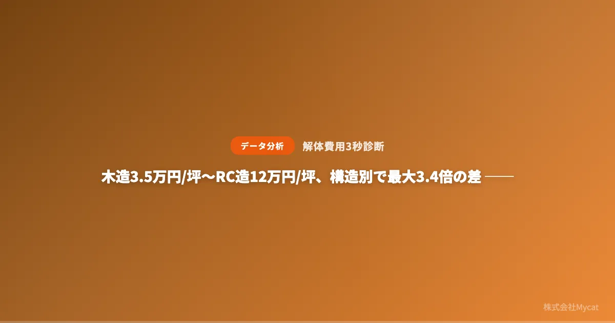 近年、空き家問題が深刻化する中で、解体費用の相場が注目されています。株式会社Mycatが運営する「解体費用3秒診断」では、国土交通省や総務省の公開データをもとに、様々な建物構造ごとの解体費用を整理し、公表しました。