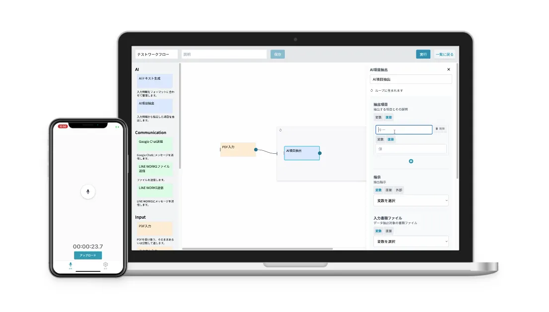 - - FAX処理の自動化:受信したFAX書類を検出し、AIが種類に応じて自動で仕分け・処理を実行。